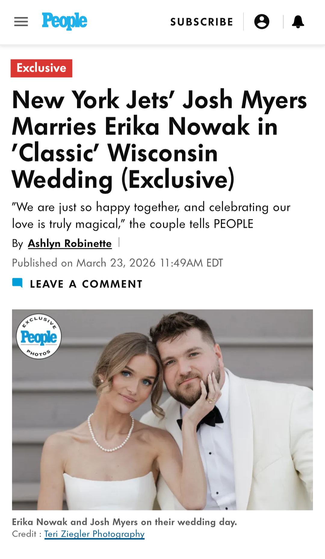 Read the whole article at: https://people.com/new-york-jets-josh-myers-marries-erika-nowak-wedding-exclusive-11932057